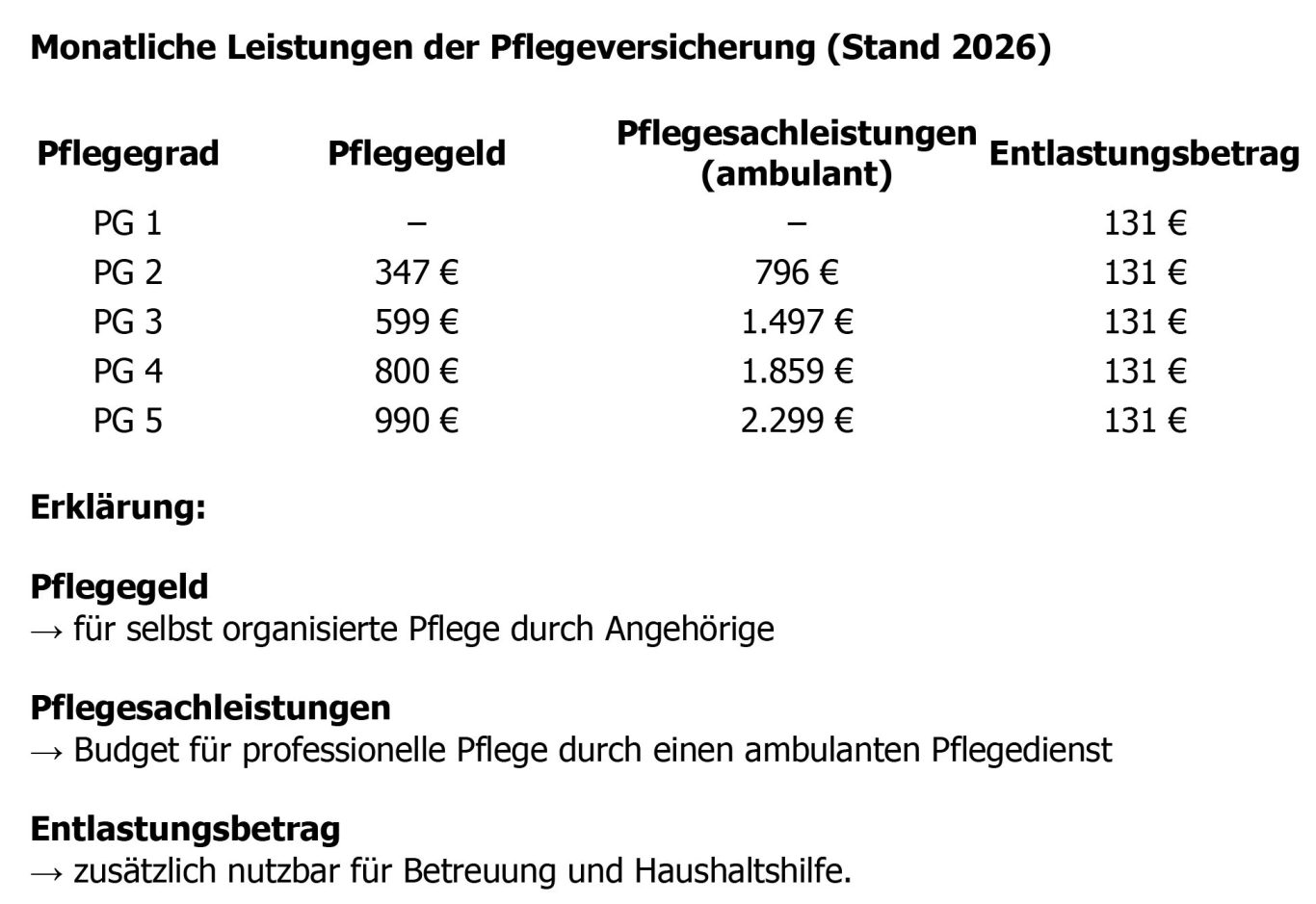 Pflegeleistungen 2026 im Überblick